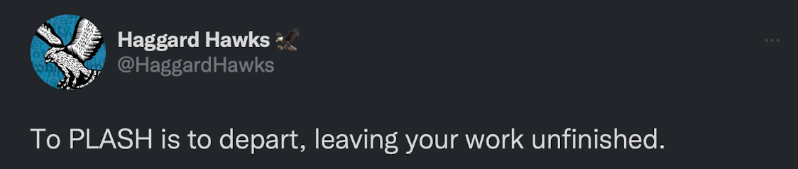 “To plash is to depart, leaving your work unfinished.”