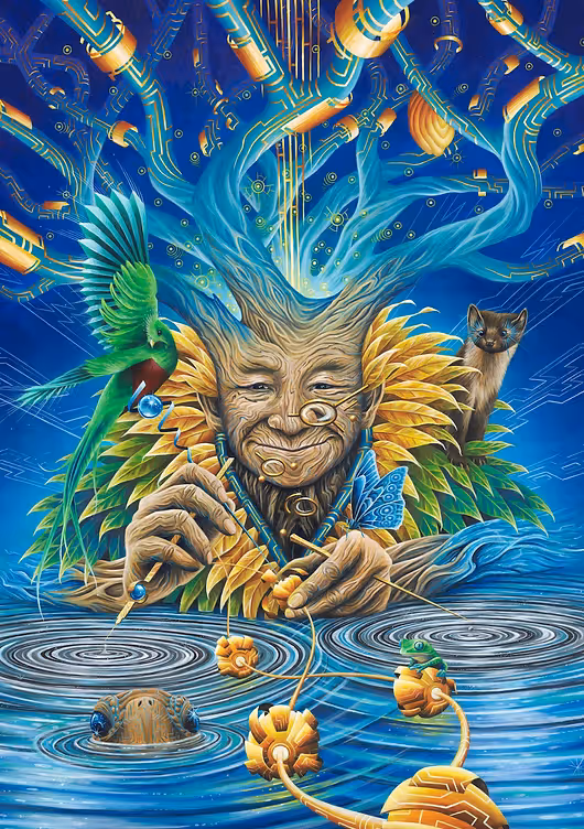 Tamamuri in his Bear and Doctor forms, by friend and visionary artist Quentin Pouyat.