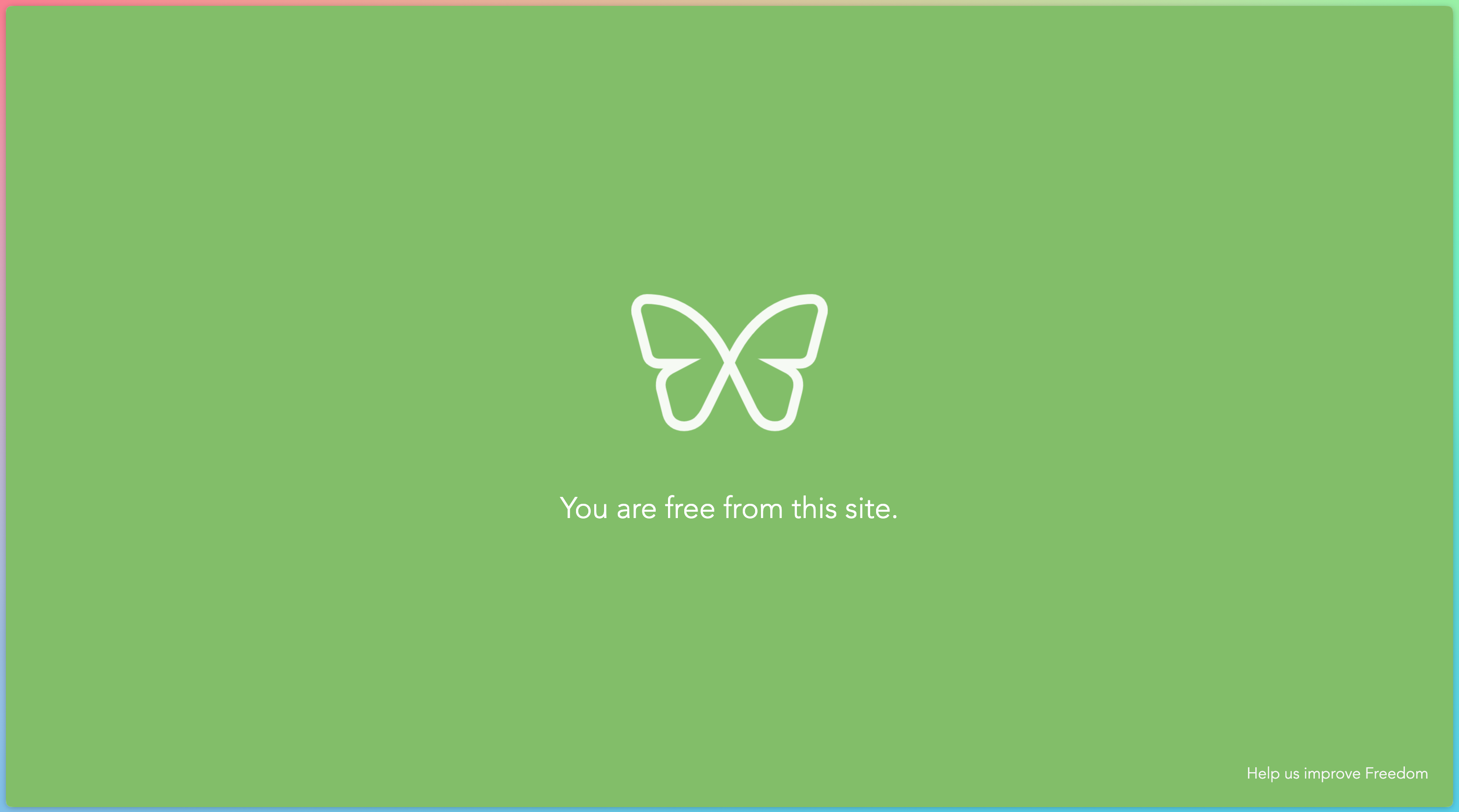 Selecting ‘Locked Mode’ means you can’t remove the limitations once you’ve started a session. Select any amount of time you want, and Freedom will block your list. Try to go somewhere blocked, and get hit with: