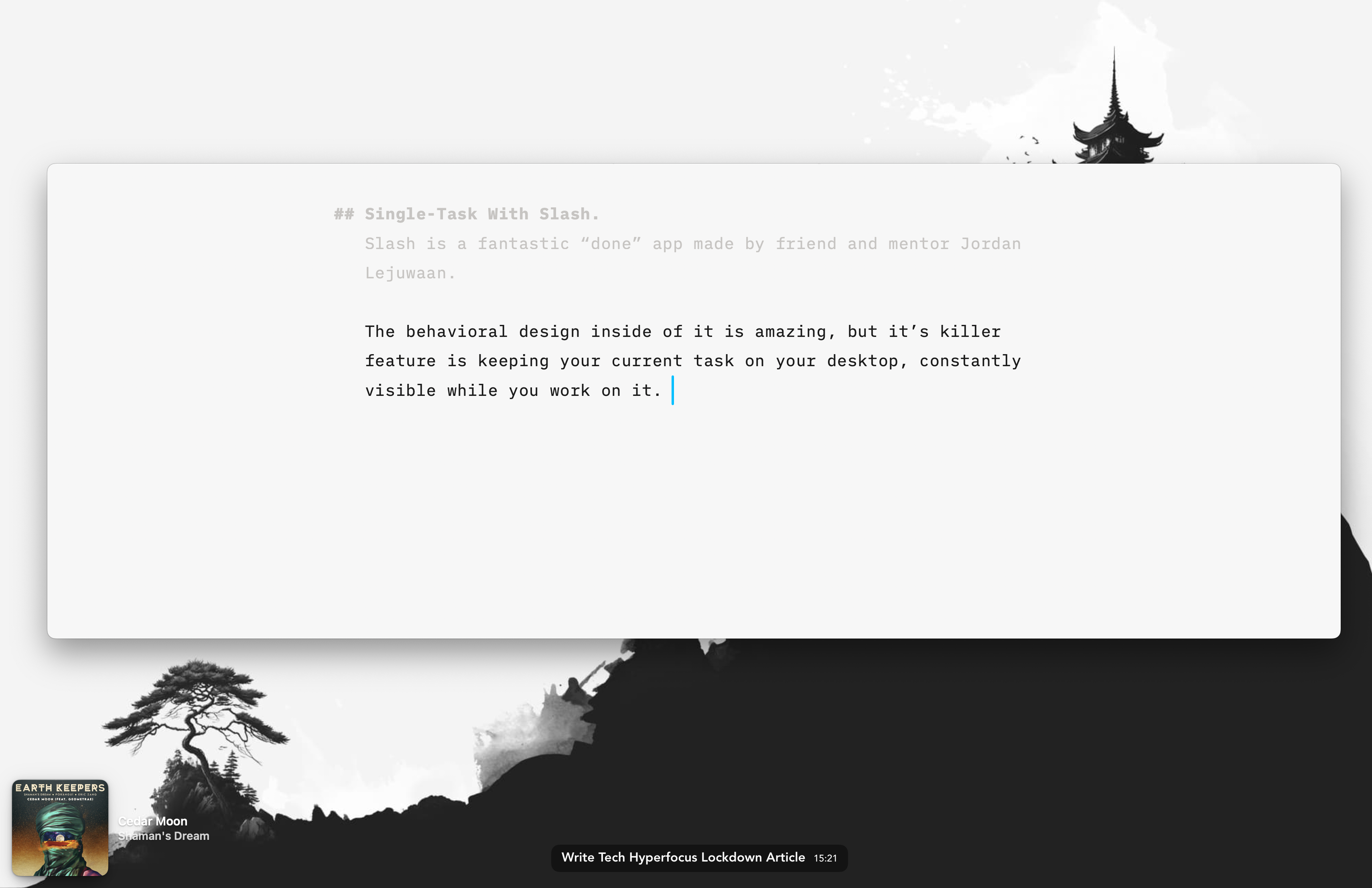I’ve used it for years, and there’s an incredible depth of features packed into elegant simplicity. It truly turns on hyperfocus and enables an insane level of output. I swear by it.