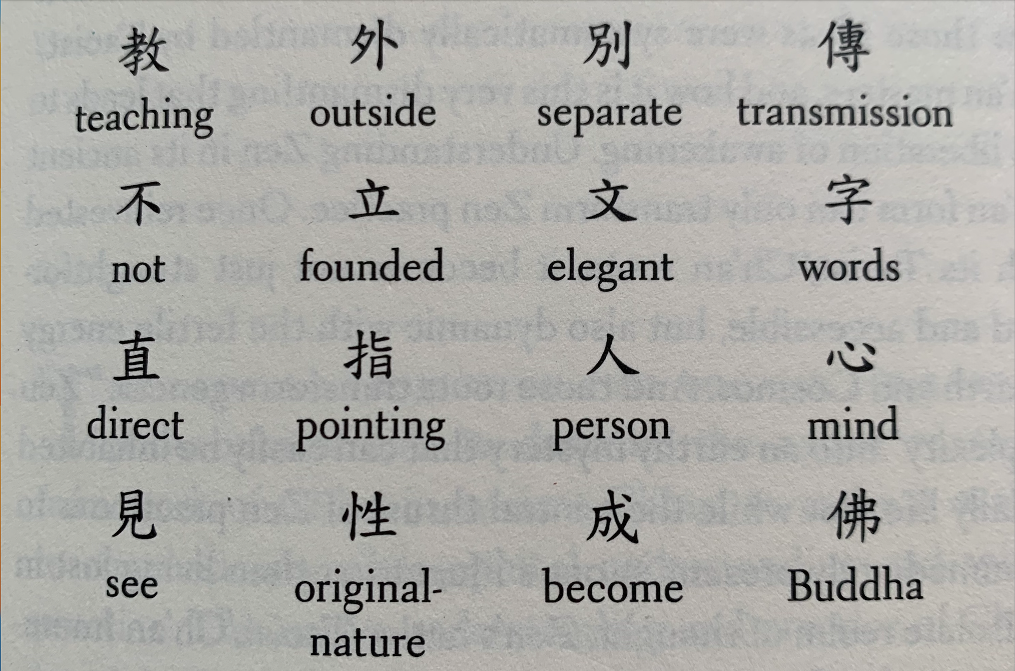 Sometimes translated as 'beyond fine words and scripture.' My tea teacher, Wu De, translates this more directly as 'No scripture. No doctrine. No dogma.'